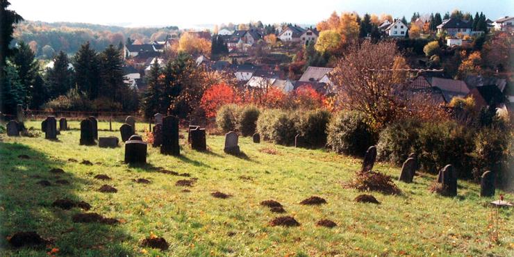 "Als noch sichtbares Zeichen der früheren jüdischen Gemeinde liegt noch heute der jüdische Friedhof über dem Dorf", erklärt Volker Bayer von den Natur- und Heimatfreunden Weyer. Auf dem 1110 Quadratmeter großen Totenacker befänden sich heute noch 58 Grabsteine. "Die letzte erkennbare Belegung fand 1938 statt, das älteste Grab ist das von Ester Riwka von 1841", sagt Bayer.
